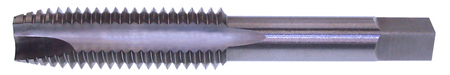 As to general physical dimensions, spiral point taps are identical with the standard hand tap. However, the spiral point tap has the cutting face of the first few threads cut at a predetermined angle relative to the tap’s axis angle to force the evacuation of chips ahead of the cutting action. This feature, plus the excellent shearing action of the flute, make spiral pointed taps ideal for production tapping of through holes. Typically, this type of tap has a shallower flute passage than conventional taps. This gives the spiral point tap more cross-sectional area, which means greater strength, allows higher tapping speeds, and requires less power to drive.