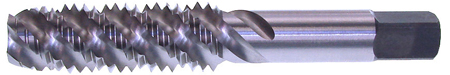 These taps, as the name implies, are made with spiral flutes instead of straight flutes. This spiral fluting feature aids in drawing chips out of a hole, or serves to bridge a gap inside the hole such as a keyway or cross-hole. Commonly available in slow spiral (25-30 degree helix angle) or fast spiral (45-60 degree).